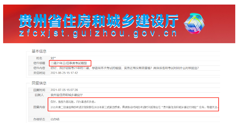 2021年度二級建造師的考試計劃安排在2021年第三或第四季度,具體報名時間及考試時間近期會在“貴州省住房和城鄉(xiāng)建設廳網(wǎng)站”發(fā)布,敬請關注。