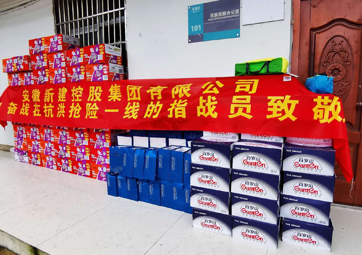 當日,由安徽新建控股集團總經理助理胡向華帶隊,我公司霍邱項目部各科室、工區(qū)代表一行10余人,到宋店鄉(xiāng)看湖墩村,為宋店鄉(xiāng)在該村承擔防洪搶險值守任務的一線人員,送去方便面50箱、礦泉水50箱、牛奶50箱,同時,以該項目部為主力成立的我公司防洪搶險第二突擊隊時刻保持待命狀態(tài),隨時準備接受當地政府安排的搶險任務,為確保人民群眾生命安全積極投入到抗洪搶險的戰(zhàn)役當中。