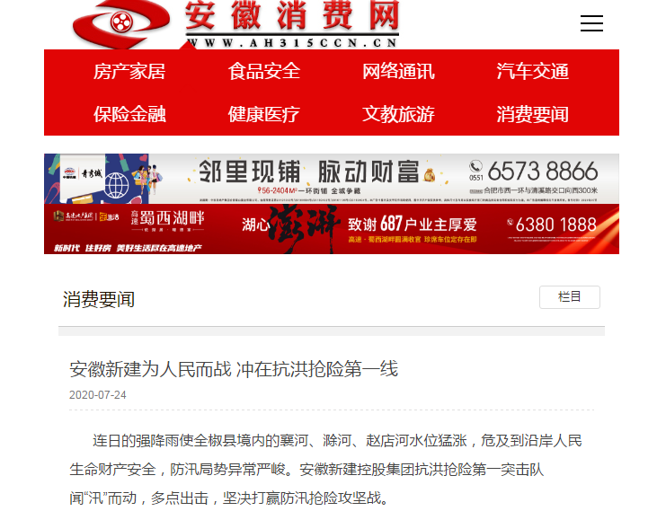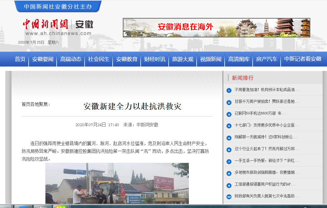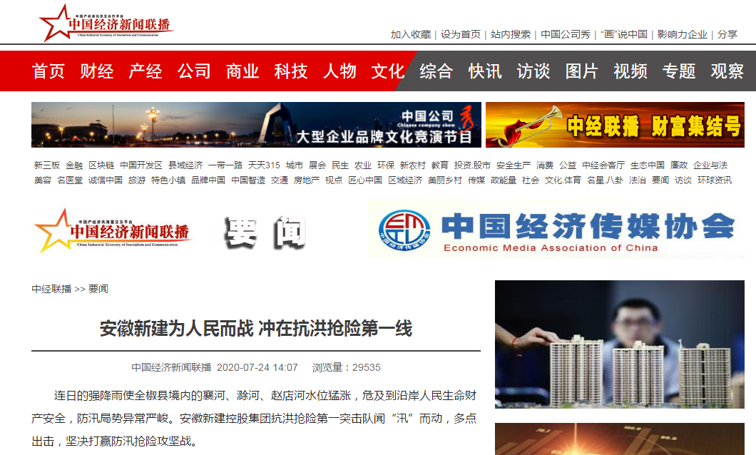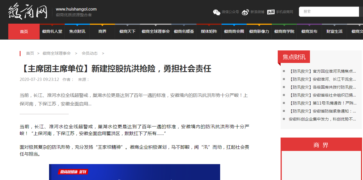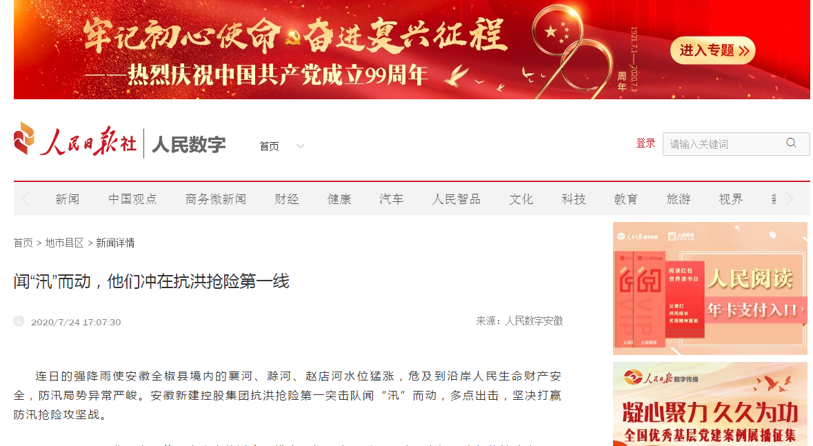 近日,安徽新建控股集團(tuán)組織動(dòng)員骨干力量踴躍參加抗洪搶險(xiǎn)的事跡,先后被人民日?qǐng)?bào)數(shù)字安徽網(wǎng)、中國新聞網(wǎng)、中國網(wǎng)、中國經(jīng)濟(jì)新聞聯(lián)播網(wǎng)、徽商網(wǎng)、安徽消費(fèi)網(wǎng)等各級(jí)媒體刊發(fā),充分展示了安徽新建人的社會(huì)責(zé)任與擔(dān)當(dāng),極大鼓舞了全公司廣大員工的士氣。