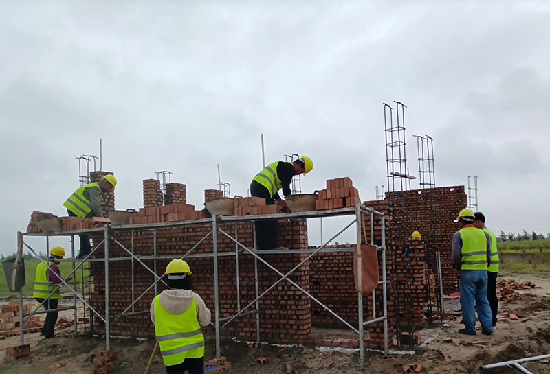 截至目前,大牛舍獨立基礎澆筑80%澆筑完成并回填,大牛舍圈梁澆筑60%,1-4號大牛舍鋼結構框架吊裝完成;小牛舍完成場地平整,支路鋪墊山皮石,獨立基礎澆80%并回填,水管挖槽敷設;宿舍食堂區(qū)支架搭設,地板澆筑完畢,頂板,屋框梁模板安裝;青貯窖:墻體鋼筋綁扎、支模、澆筑;更衣消毒室、門衛(wèi)室主體、門窗安裝、抹面完成。