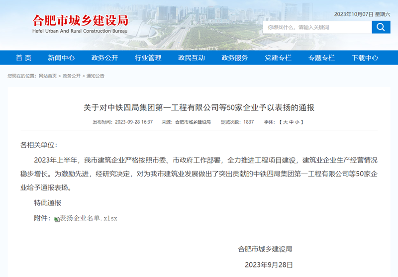 近日,合肥市城鄉(xiāng)建設(shè)局發(fā)布通報(bào),表揚(yáng)在2023年上半年全力推進(jìn)工程項(xiàng)目建設(shè),企業(yè)生產(chǎn)經(jīng)營情況穩(wěn)步增長,為合肥市建筑業(yè)發(fā)展做出突出貢獻(xiàn)的50家企業(yè),集團(tuán)公司榮列榜單。