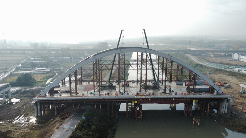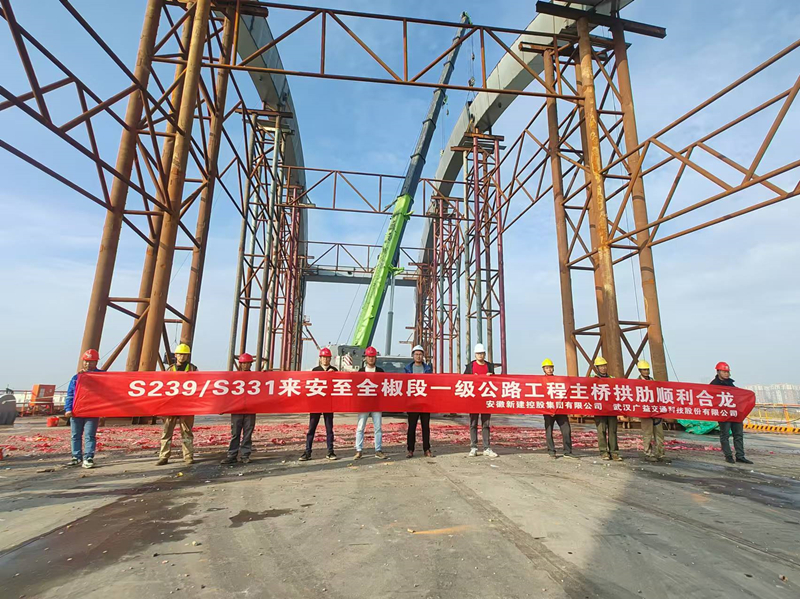 11月10日,隨著最后一節(jié)鋼管拱肋節(jié)段吊裝,嚴(yán)絲合縫安裝在橋墩上,集團(tuán)公司承建的S239/S331來(lái)安至全椒段一級(jí)公路工程主橋拱肋順利合龍,為下一步大橋吊桿系桿施工打下堅(jiān)實(shí)基礎(chǔ)。