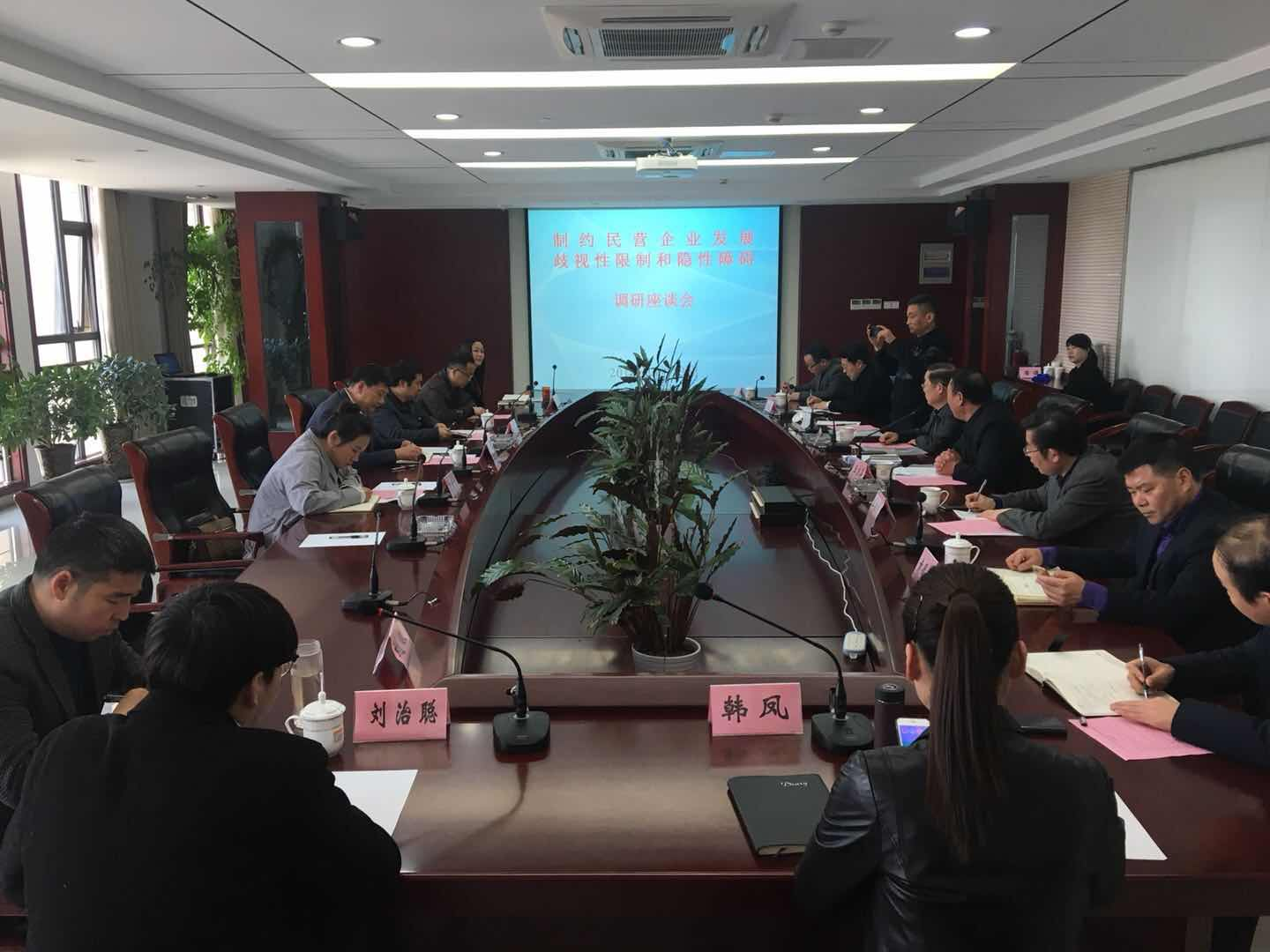 2018年3月13日下午,安徽省工商聯(lián)在我公司舉辦“制約民營企業(yè)發(fā)展歧視性限制和隱性障礙調(diào)研座談會”。出席會議的有安徽省政協(xié)副秘書長、安徽省工商聯(lián)黨組成員、副主席施廣勇、安徽省工商聯(lián)政策研究室主任李增流、安徽省工商聯(lián)機關黨委副主任科員袁志慧、安徽省城市基礎設施投資商會的監(jiān)事會主席、執(zhí)行會長、副會長、秘書長等各位企業(yè)家代表。
