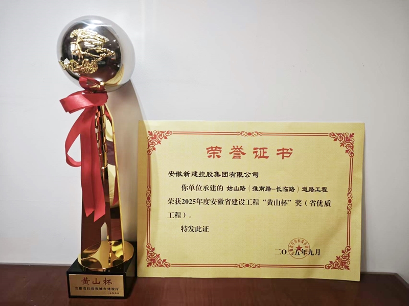 近日,安徽省住房和城鄉(xiāng)建設廳正式頒發(fā)獎杯證書,集團公司承建的姑山路(淮南路-長臨路)道路工程,榮獲2025年度安徽省建設工程“黃山杯”獎(省優(yōu)質工程)。
