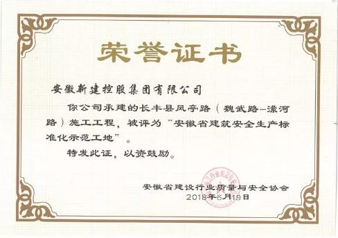 近日,安徽省建設行業(yè)質量與安全協(xié)會公布了2018年度第一批安徽省建筑安全生產標準化示范工地(小區(qū))名單,由我公司承建的鳳亭路(魏武路-濛河路)項目榮登榜單!