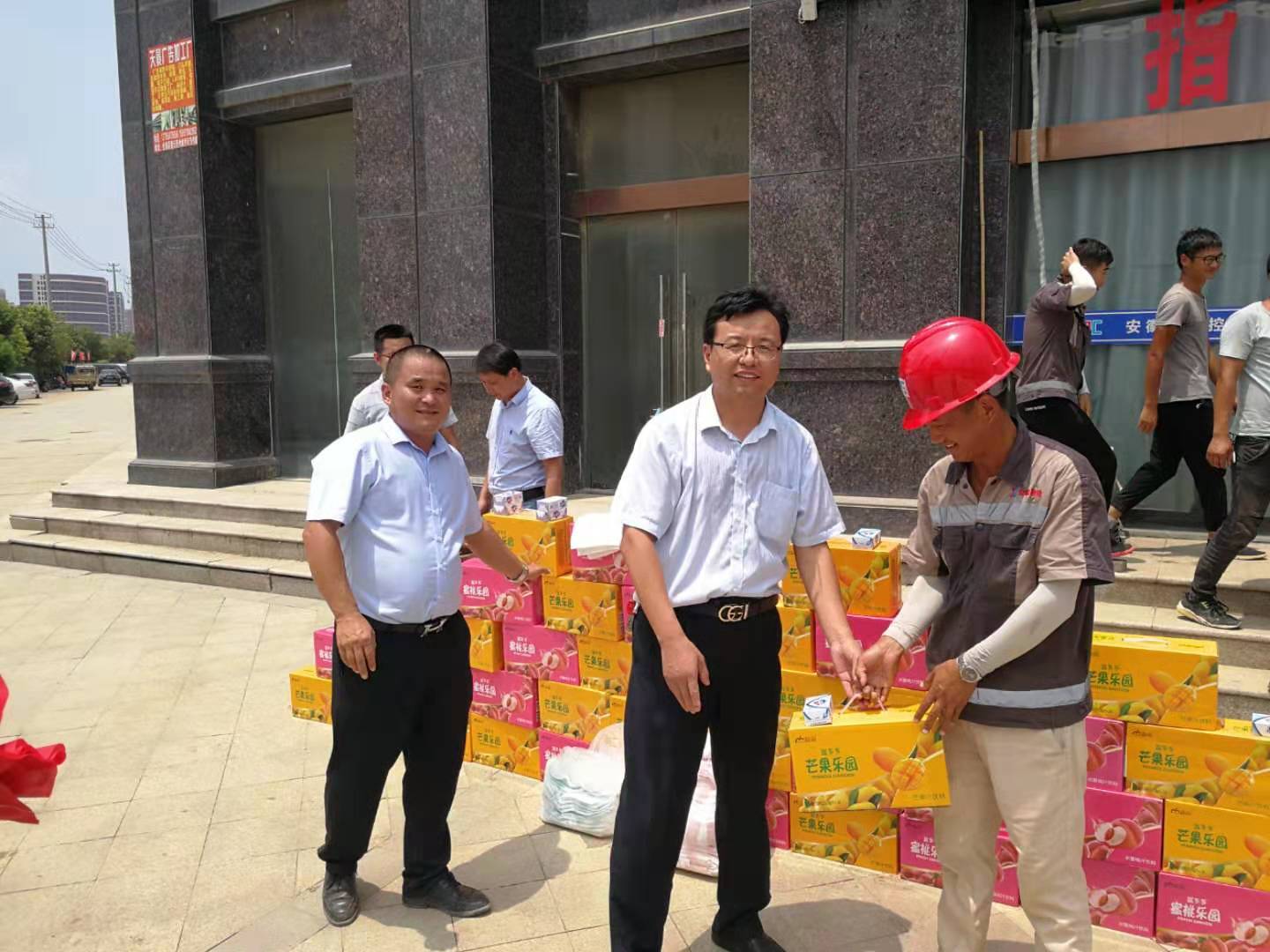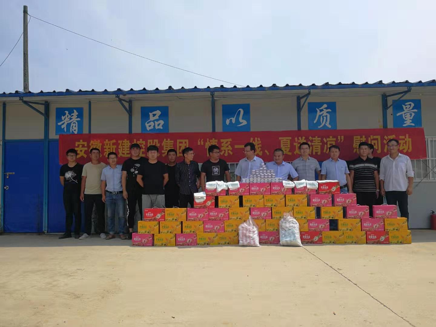 為切實(shí)做好夏季防暑降溫工作,確保一線員工的身體健康和安全生產(chǎn),2019年7月24日,安徽新建控股集團(tuán)有限公司行政總監(jiān)賀軍、財(cái)務(wù)總監(jiān)葉炳宏、總工程師李小寶、人力資源部經(jīng)理廖龍華一行,到全椒縣各項(xiàng)目部組織開(kāi)展“情系一線、夏送清涼”慰問(wèn)活動(dòng),為項(xiàng)目工地的一線員工送去防暑降溫物品。